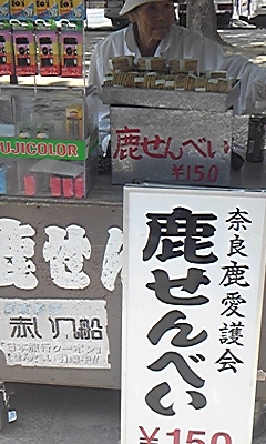 奈良公園では鹿せんべいのお店を多くみかけます。
