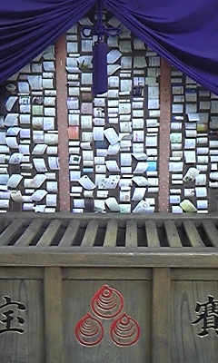商売の神様なので名刺があちらこちらに挟まれてます。