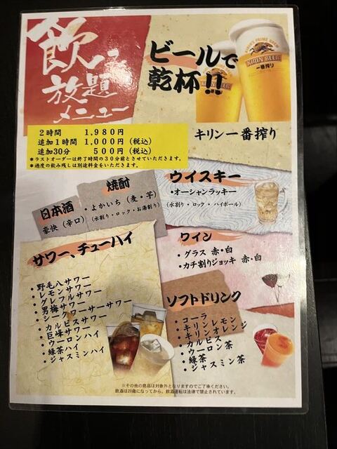飲み放題は8周年記念のお通し付の90分(LO.70分)