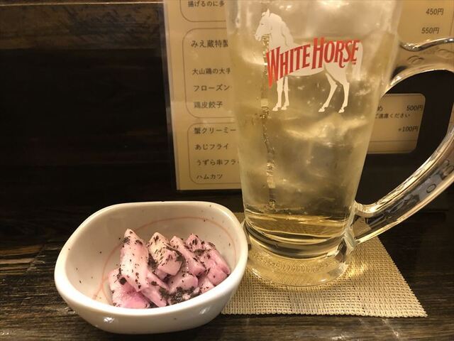 飲み物は何時もの馬ハイ(ホワイトホースのハイボール)野毛ハイと言えば出てきます。