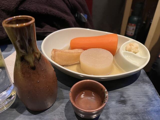 お通しは冷たいオデン!これが意外と旨い?好みです。