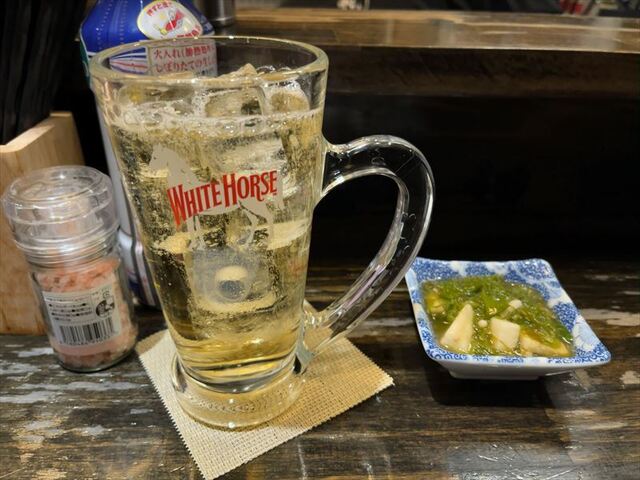 飲み物はホワイトホースのソーダ割でメーカー側が野毛ハイボールとして宣伝しているモノです。