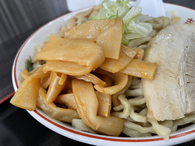 見た目はいつもと変わらず。底にタレ&アブラが少々。具材も変わらずネギ、穂先メンマ、チャーシュー。