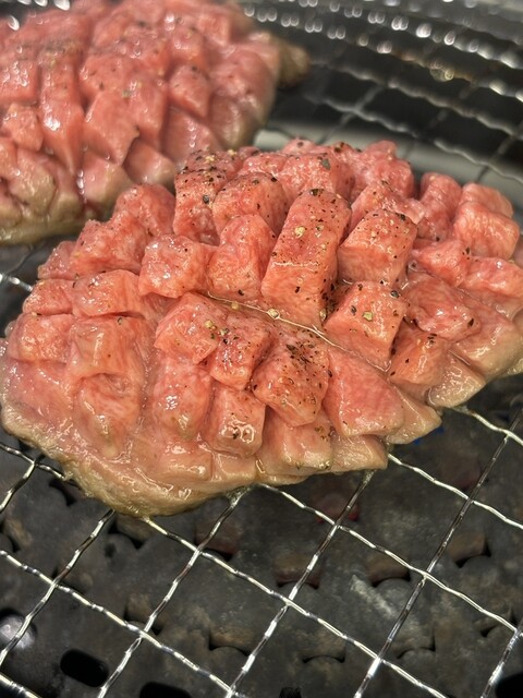 素晴らしい肉質とボリューム。タンは美しいダイヤモンドカットの希少な芯たん。柔らかくショキショキです。さすが、ハラミ専門店のハラミは柔らかさが違います。しっとりシュワっととけて、肉本来の旨味が濃い❗️