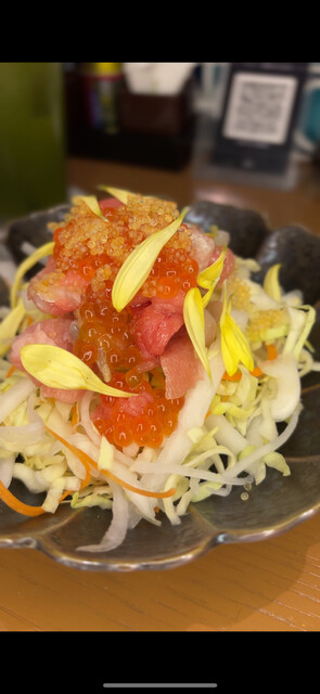 ガリドレッシングが旨い!生姜好きなので、嬉しい味付け。新鮮魚介ももりもりです