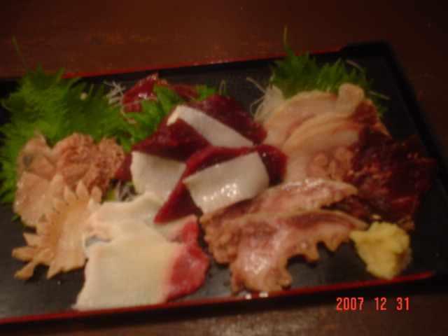 枝豆は他店のものより筋が少なくあっさり。蒸しうにはてっきり鴨の肝かと思いましたよ(^^ゞ そうこうしているうちに、鳥わさと地鶏のレバと砂肝が運ばれてきます。参会者が産地を尋ねたところ「どこか分かりませんが、女将が責任をもって選んでお持ちしています」と上から目線の一言。