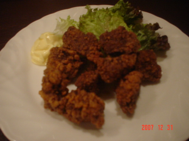 地鶏から揚げは衣が一切なく、でもしたたり落ちる脂がから揚げであることを雄弁に主張。とにかく肉厚で食べた気がしました。やはりある程度の量を口にしないと食べた気がしないσ(^o^)だけに満足。