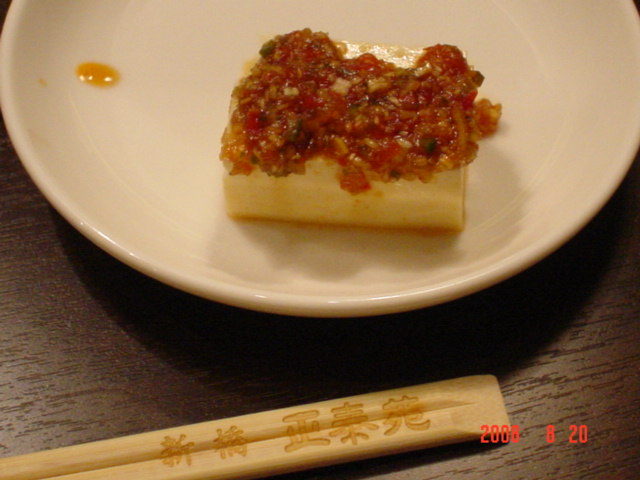 雷門の麓で待ち合わせて店内へ。すでに付きだしの枝豆と蒸しうにが置いてあります。全て個室対応ですが満室、それも我々より若い人達や外国人達が食べているのを見て複雑な心境。特に隣室からは推定欧州人の英語が大声で響いてきます。「あれ、ナレさんじゃない?」とミシュラン責任者の覆面視察を疑うような会話が隣室から英語で聞こえてきました。