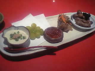 今は国産山梨ワインが旬だそうでワイン好きには外せません。ワインといえばすぐ輸入モノを置く店が多いけど、実際には、並みのフランスワインよりも山梨ワインの方がはるかにレベルは高いそうだ。産地のはっきりした国産物を積極的に売り出していこうという姿勢には好感。