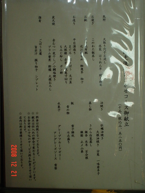 最近店主は不在のことが多く、店の雰囲気が変わりました。それはそれとしても、ずっと通ってみて最近は「外食産業も大変」なんだなぁ、と思いつつ、評価修正(H21.12.)。