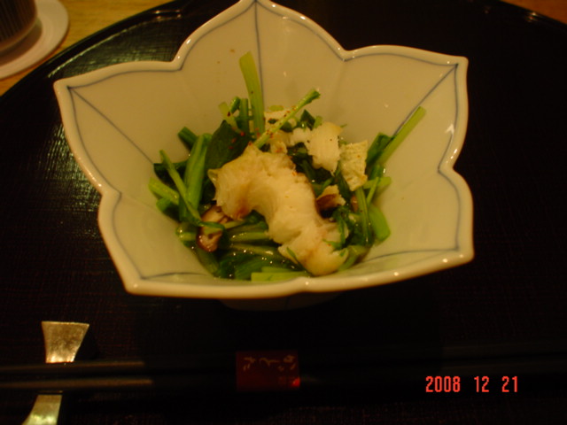 今期は、この店としてはすっぽん・ふぐには遅い年末のためか、目を剥くほどの皿はなかったけど、意外にも目板鰈の火加減が絶妙で身がほぐれやすく驚喜。今夜は店主がおらず貴乃花親方似の店員が店を預かっていたが、入店時から焼きもかなり上達したようです あと、この店のコースでウリとなる油焼きと蒸し物は、今回は牡蠣の油焼きとさわら白菜蒸し。前者はいつもながら必要最低限の油でさっと焼いたさっぱり感が舌に心地よく、後者はさりげなく混入された百合根の食感が歯ざわり良く食べられました。また雲子雑炊も、白子の甘みが雑炊の玉子とうまく融合して後を引きました。すっかり満腹&満足で店を後に。