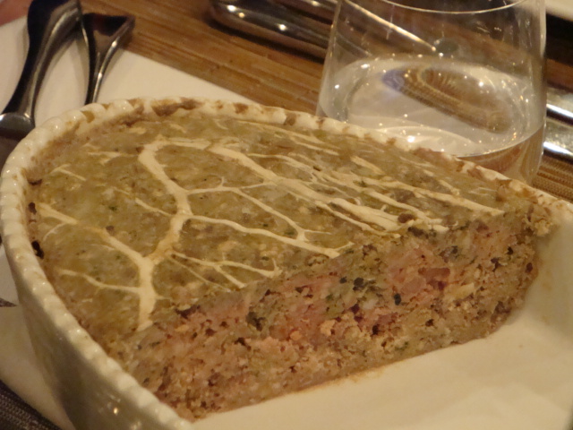 前菜のパテの段階で、器半分を5人で食べ切ってしまったところ、メインに備えて筆者は控えていました。先週来リアルに会ったマイミク各位はご存じの通り、先週初めから喉奥の激痛が治らず、話すのも食事も辛い。そこで食事を控えめに。食事も進みメインに達すると、皆満腹で皿を終えられず、ここまで「蟻さんのように」忍耐の美徳を発揮して食べ控えていた筆者が、次々とさらうことに。美味しゅうございました。