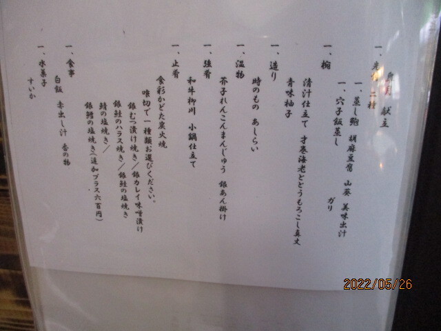 毎年の送り火上洛直前に知り、同門の与志福店主に話を聞いてから来店。夜の部は開店当初は7000円コースのみでしたが、今は7000円・10000円・13000円・15000円と4コース構成【H23.1.よりコースは11000円・16500円のみ】。迷ったけど電話の応対にやや不安があって、最初は7000円コースでいいやと予約しました。