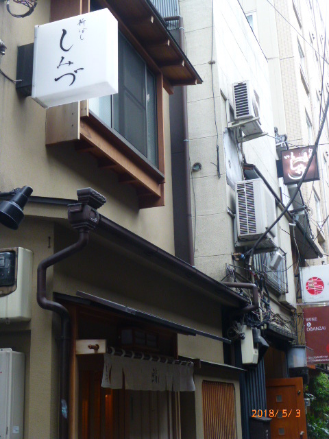 握りの最初カレイを食べて愕然。酢飯の酢が強過ぎる! 後で知ったけど、「しみづ」は赤酢の酢飯をウリにしており、握りを口にすると酢が先に来るのが、鮨通の評価を高めているそうです。途中に出てくる「甘いつめ」とこの酢味が調和し、酸っぱさと甘さのバランスが抜群に良いそうです。赤酢の鮨は4年前に京都祇園でミシュラン鮨店に入ったことがありますが、この時同様に強い酢味でした。確かに、最初のうちは酢味の強さが気になりましたが、同じ酢締めのこはだ辺りからバランスが取れて来て、後半は酢の強さが馴染み全然気になりませんでした。