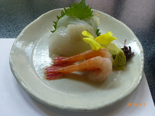 ・つまみ…ホタルイカのオイル漬け・沖漬け、蝦蛄のオス・メス、甘海老の昆布締め、とり貝。