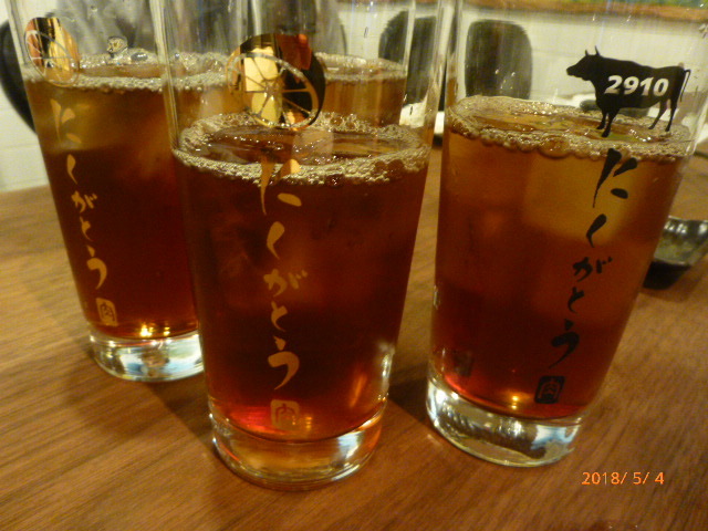 “肉ケーキ”を持ったオーナーが ♪ハッピバースデートゥーユー♪ の鼻歌を口ずさみながら入室。再度「おめでとう!」の乾杯をしてから、肉を解体して焼いてくれます。「そういえば今夜は、オーナーが自ら肉を焼くって言ってなかったっけ?」とは、ここに書くにとどめましょう。単に肉の柔らかさと甘みだけではなく、仕込みの巧みさがタレと肉の持ち味のバランスをよく活かしています。参加者たちにも絶賛で迎えられ、帰宅後にもfacebookへの書き込みで高い評価を記してくれていました。