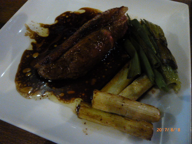 「まだ食べられます?」と聞かれ全員「もちろん!」と答えると、店主は予想通り?と次の料理を作り始め、出されたのが「合鴨のローストにバルサミコ醤油ソースのかもねぎ」。ダブルメインとは!www 前者がレモンソースでさっぱり味だったのに対し、こちらはバルサミコと醤油に合鴨から出た肉汁もブレンドした濃厚なソース。バランスの良いコース構成に皆感心しました。