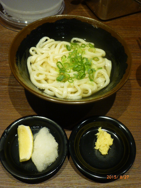 上げた写真では少ないように見える麺ですが、これはこの後和食の自催オフ会があるので筆者だけ、「小」でも多いからと特別に盛りを“極小”にしてもらったからで、普通に注文すれば、この3倍以上の量が出ます。満腹ですねwww 筆者は容姿が太くないせいかうどんも太くない方が好み(ん?)なんですが、太さ中くらいで、うどんのこしが良く伝わってきます。同席した別のグループの客たちも、太すぎずほど良いと申していました。かけは「冷」でと勧められたのですが、今日は涼しいし?敢えて「温」でお願いしたけど、これが正解でした。だしの繊細な味わいがよく舌に残ります。これは、昨日までいた祇園で食べ歩いた割烹「つじや」「たまりや」の椀物と同じレベルのだしだ!とそのレベルの高さに驚きつつ、店主に後で尋ねたら、なるほど、そういう食材で料理していたんだぁ、と感心(あ、隠し味は企業秘密だそうなので書きません)。ぶっかけは、かけとは違う食材でおだしを仕上げてますね。本当はもっと食べたいのに、この後の予定があるのが残念!と、改めてゆっくりと食べに来ようと思った次第。料理業界に長い香川県出身の先輩が明日訪ねるそうですが、讃岐うどんについては一家言もつ彼も満足することは間違いないでしょう。