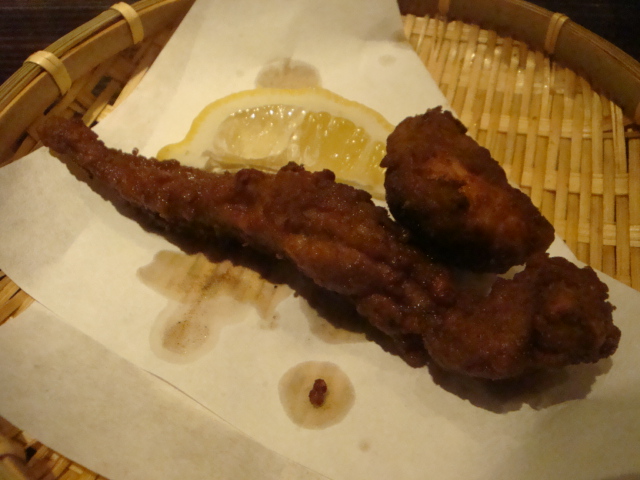 特に蛇は裏メニューで、他の客に「ほかに裏メニューとかないの?」と尋ねられた店主が「もう少量ですが、蛇が・・・」と言った瞬間に筆者)が「それ、頂戴!」と間髪入れず(笑) 店内の皆から「まるで『それロン! ドラドラ大三元!』みたいですね」と暫く話題にされましたよ。でもそれ以上の珍品「ウーパールーパーのから揚げ」が秋のヒットでした。晩秋には「今回を逃すともう数年はお目にかかれれない」野生ヒグマ鍋が登場、いつも参加者難に困る弊主催オフ会がこの時ばかりは増員につぐ増員で「あわや貸しきりか?」とまで案じられました。