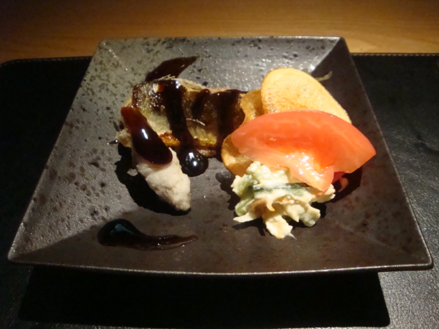 八寸(鱧の子塩辛、ごま豆腐、鶏肝時雨煮、南京煮、里芋の珈琲和え、ほか)