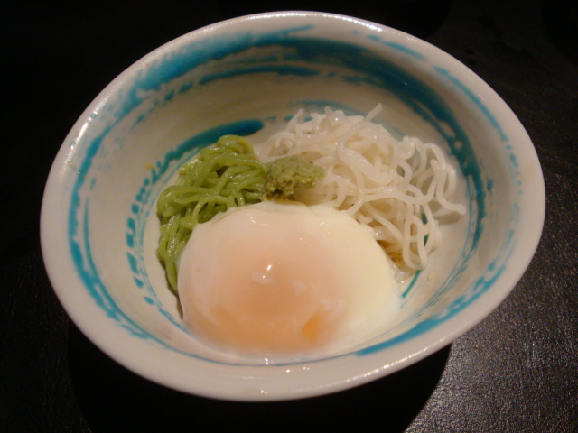 料理は懐石の枠組を基本としながらも創作料理の要素をもつ皿もあり、“セミ懐石”といったところか。ただ懐石としての季節の皿の基本は押さえた上で、店主なりの京料理を創り出そうという意欲が感じられます。近所に有名和食割烹の多い中でにあっては未熟な部分も散見されますが、今後の成長が楽しみな感じもします。価格も手頃で、その意味では高コスパかもしれません。意外にも京の白足袋族が夜半に集まる店らしく、料理以上のものが得られそうな店として、暫く通って生暖かく見守ってみたいと思います。