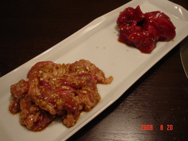 ロースの切り落とし(たれ=写真奥) とハラミのしっぽ(たれ)