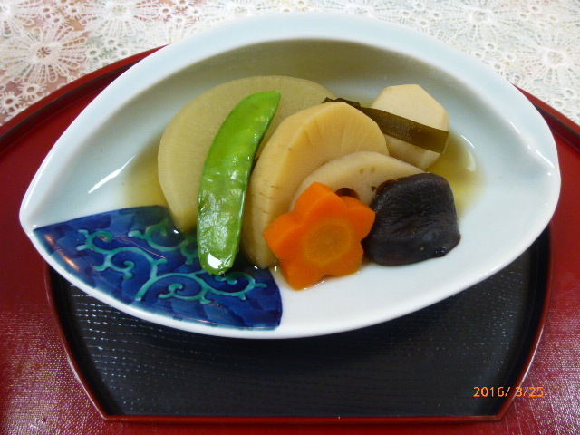 料理は鎌倉野菜の現地調達のほか、焼物で出されたタケノコが建長寺の裏山で取れた門外不出の「建長寺産」であるように、食材にはかなりこだわっています。砂糖やミリンなどは使わず蜂蜜でしつらえられた料理のデキも優れており、特に煮物は皆さん絶賛していました。