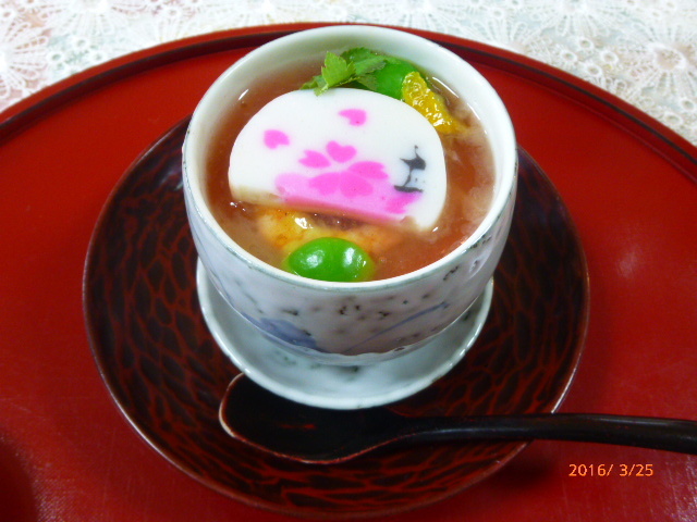 蒸物 海老入り梅風味の茶碗蒸しに桜蒲鉾