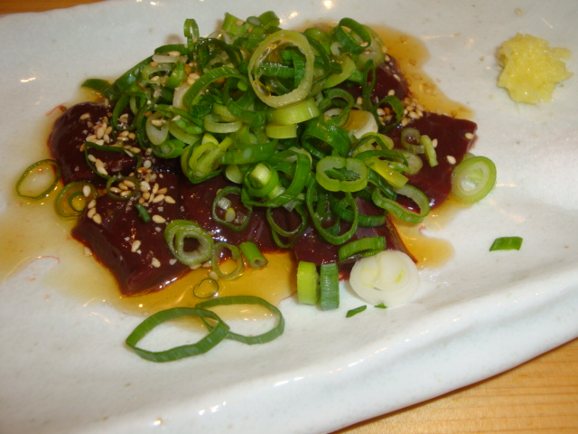 この店は「千葉」チェーンの焼きそば部門。でも同系列なのでレバ・センマイ・タンの刺身は常備。なくなるとチェーン同士で回すようですが、他の「ホルモン」「肉なべ」が人気高くてなかなか席が取れない「三ッ星フレンチ『カンテサンス』並みの」予約至難店であるのに対し、隣のこの店は穴場でした。もちろん席数少ないので満席になることも多いけど、携帯番号を渡しておくと、席が空くと電話してくれます。一次会としてガッツリ食べる時にも、二次会以降利用でナマ肉だけを食べたい時にもと、用途が多いのは使えます。
