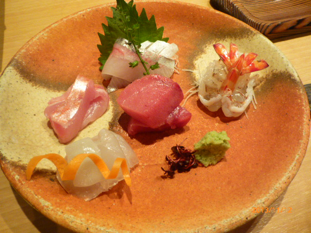 お造り(かんぱち、車海老、メジマグロ、金目鯛、ひらめ)