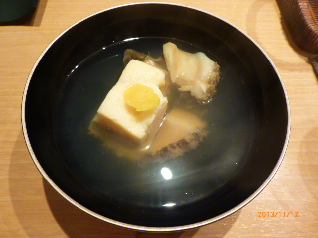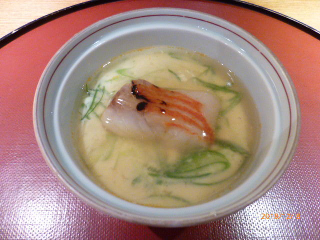 確かに、相変わらず和食会席としては中途半端。でも「和食は『型』」という観点からすれば、一応「椀物」を出しています。最近は「お椀抜き」の和食がミシュラン店でさえ多くなってきているのに、精進の姿勢が感じられます。他に、お造り・炊き合わせ・焼物・食事(笑)といった和食会席の要素も「型」は押さえている点には好感。でさらに、【3500円】税サ無しだし。
