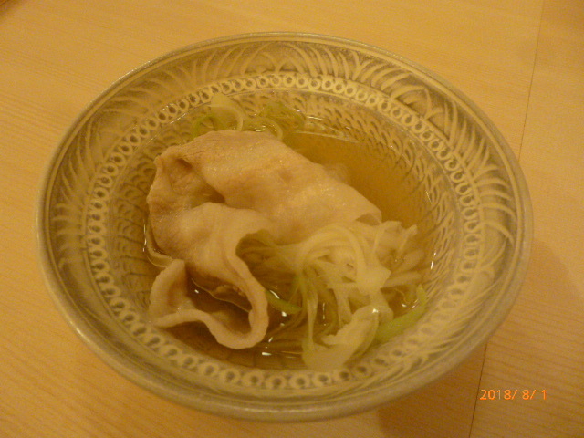 店は金春通りを入ってすぐのビル7階。地下には春に訪ねた会員制フレンチもあります。新橋駅から近くで分かりやすい。寿司屋を居抜きにして今週開店したそうで、つやつやに磨かれた壁やカウンターが目をひきます。鹿児島黒豚しゃぶしゃぶのコースが2つ、しゃぶしゃぶは店員が作って出してくれるのが嬉しい。今夜は店主が開店の話などをしながら全て作ってくれました。