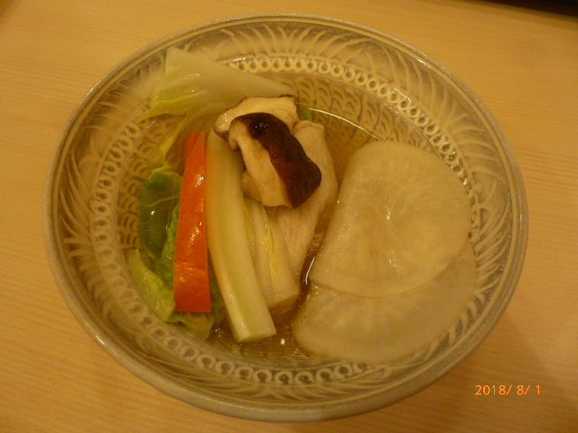 しゃぶしゃぶの出汁は秘伝(笑)のようですが、出汁の濃さがちょうど良く、豚肉の持ち味を引き立てるから美味しい。この出汁で充分しゃぶしゃぶがいけるのに、味を変えるための塩が12種類用意され、6種選択。トリュフ塩・柚子塩など、よくこれだけ揃えたと感心。これでは味を変えるために肉をおかわりしてしまうでしょう。
