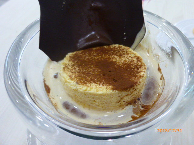 デザートはティラミス。シェフが来て、チョコの蓋の上からシロップをかけてくれました。イタリア人シェフの作だけあって、巷のティラミスとは全然違う落ち着いた味わい。ハーブティーが熱いので冷ましがてらにウニの写真を撮りまくって、すっかり満腹になりました。