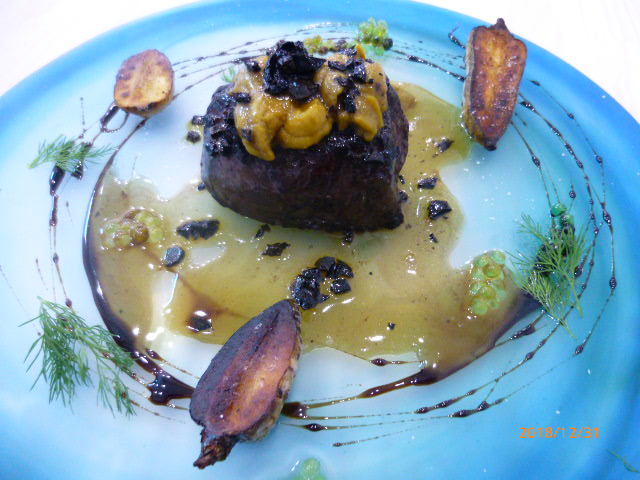 「ウニココのロッシーニ越え」(牛ヒレ肉にウニ・キャビア・黒トリュフのせ)
