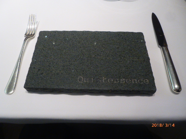 5年もたつと、品川駅からの送迎バスの乗り場が変わっていて、探している間に20分に1本のバスを乗り過ごしましたが、そこは早めに来ていたので、店に着き個室に入室した時点で定刻でした。個室なので、料理などの撮影可、、、ですが過去の記録を見ると、旧店舗時代はダイニングでも撮影されています。謎だ!