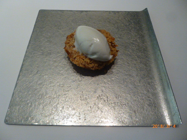 その肉料理は、ラムドック産乳飲み仔牛のカジドヴォーに落花生とセロリのつけ合わせ。厚味が鰆に比べてイマイチなのは高望みし過ぎとしても、肉がややパサパサ乾燥気味。とはいえ、その辺の他店のメインに比べればレベルは段違いに違いますけど。