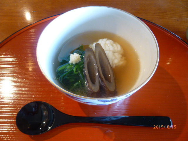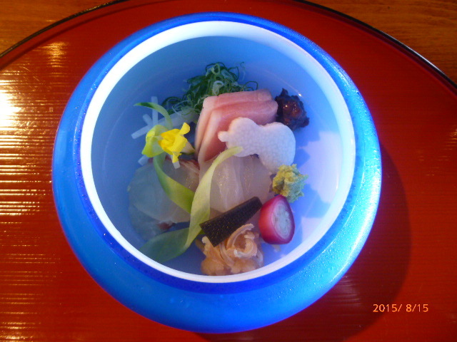 1938年開業の老舗?料亭ながら、昨年大晦日に偶然馴染の祇園のバーで副料理長を紹介された縁故で2月にランチ予約が入れられ、4月にはディナー予約を入れました。8月には日程の都合上、昼予約だけど夜の標準コースでと申し入れて快諾されました。