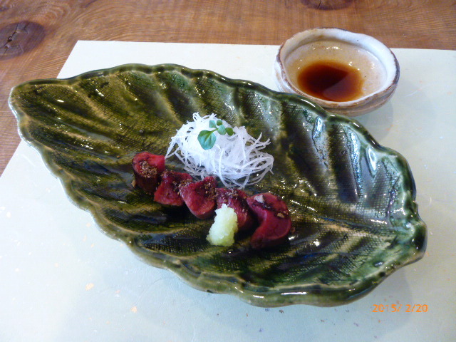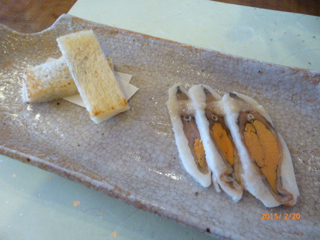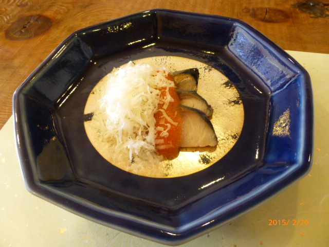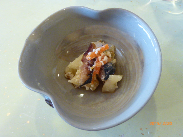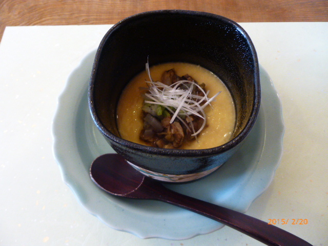 途中店主が店のなりたちや、実は日本の発酵食品の研究機関の一つでもある旨を説明、我々に出される食事は「研究成果」でもあるとのこと。我々が入店した時に「雪積もっているのね~」と何気に撮影した窓の外のかまくらは、店主によると、獣肉や近江牛を埋めて発酵させるための装置だそうです。店主が毎朝発酵状態をチェックしてデータ管理していると聞いて、我々は感服。