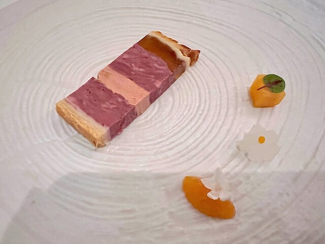 アナグマ、クマ、鹿、イノシシのパテです。真ん中にはフォアグラ。これは濃厚。この上なく濃厚。クマの野性味や、アナグマやイノシシの脂の旨みなど…好みが分かれるところですが、ジビエ好きにはたまらない一品でしょう。