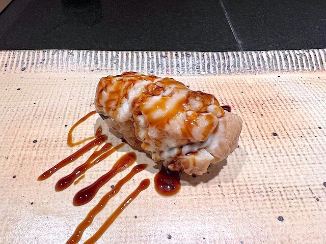 うん、すごかった。シャリとの一体感を出すために、イカを薄く切って重ねたミルフィーユ状にしています。とろりと甘みが強く、口の中でシャリと絡み合います。素晴らしい。