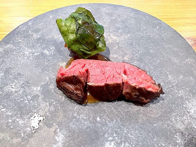 麹に漬けた土佐あかうし。噛めば噛むほど旨味がでてくる。味がしっかりしていて赤身、脂のバランスも良い。