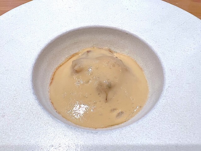 ・鱈の白子、牡蠣の肝、黒にんにく、切り干し大根、玉ねぎのジュレ