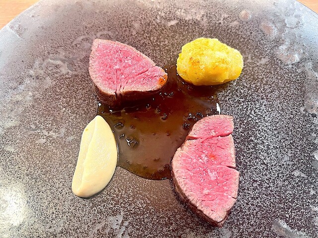 ・岡山県産牛フィレ肉のステーキ、インカの目覚め、トリュフのソース