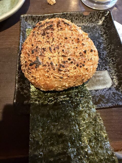〆に鮭の焼きおにぎりを食べました。香ばしくて美味しくてまた食べたいと思いました。
