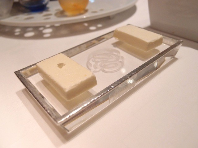 パンは、大き目の自家製ブリオッシュに、有塩&無塩バター。