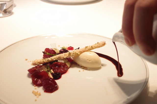 ■アメリカンチェリーを三種類の調理法で パンデピスのアイス、“ヴィンコット”貴腐ぶどうの温かいソース