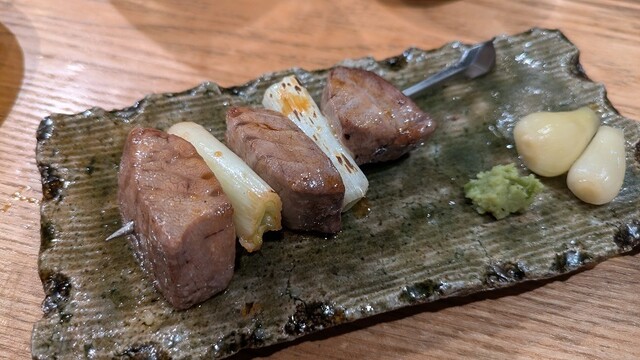 串焼きされたまぐろとねぎですがまぐろが脂ののった部位でジューシーです