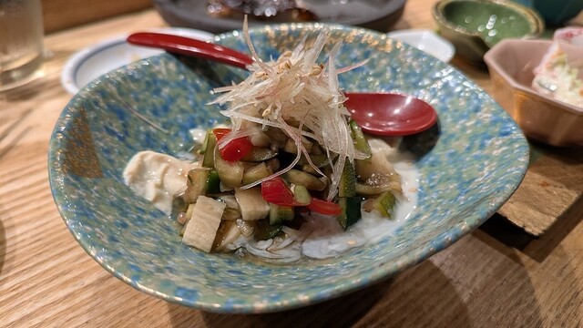 細かくカットした夏野菜や香味野菜と湯葉に出汁でさっぱりと美味しいですね