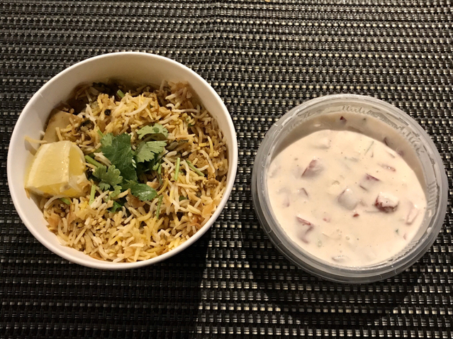 ビリヤニとカード(ヨーグルト)がセットになってて、